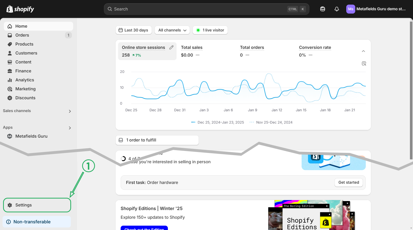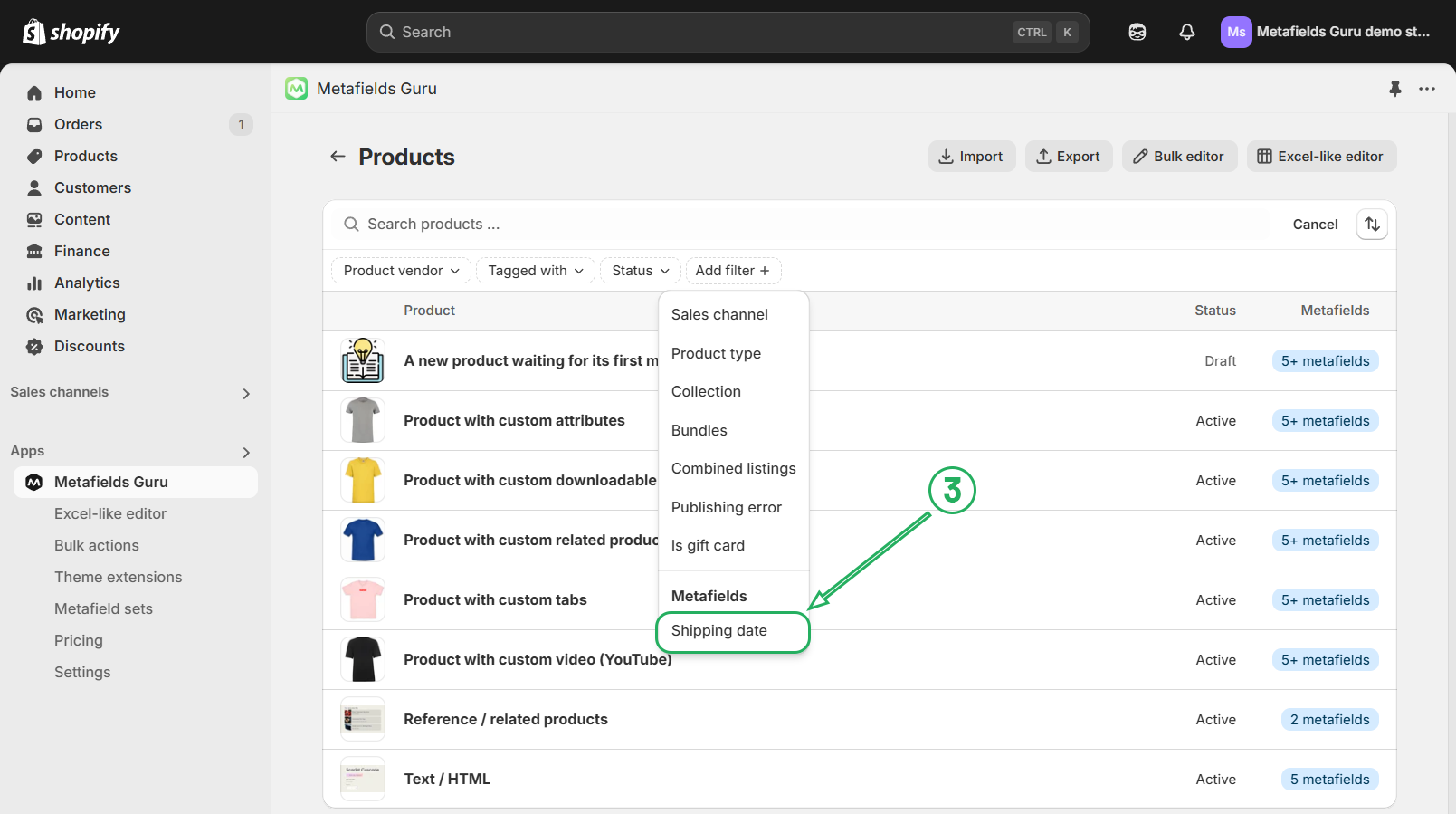 Next, select a previously created metafield (3):